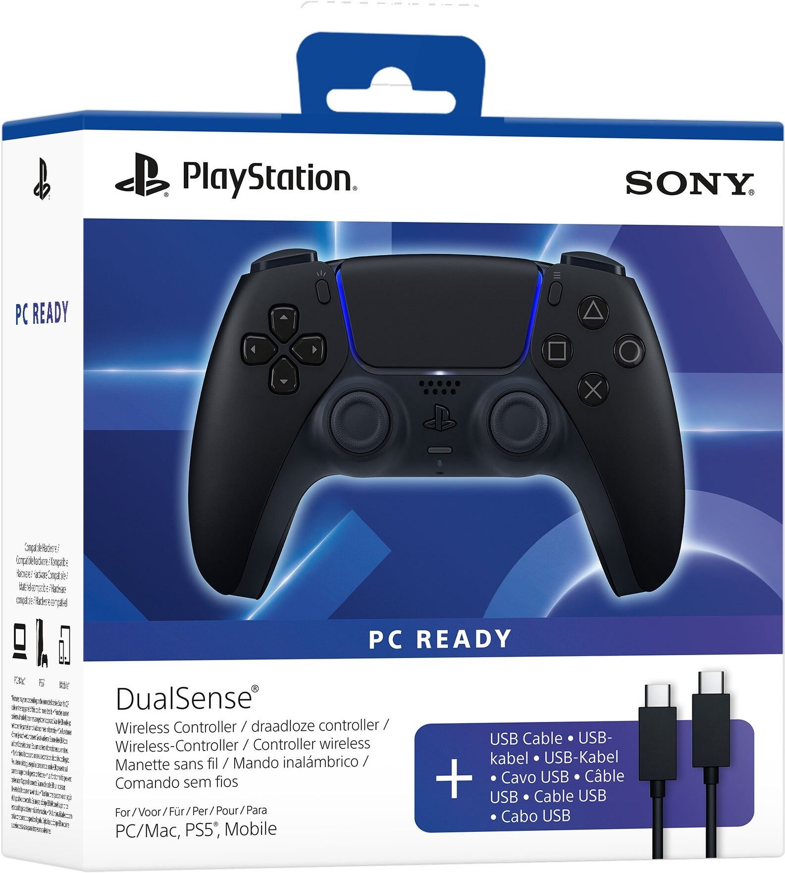 Sony DualSense - Midnight Black + USB-kaapeli -peliohjain